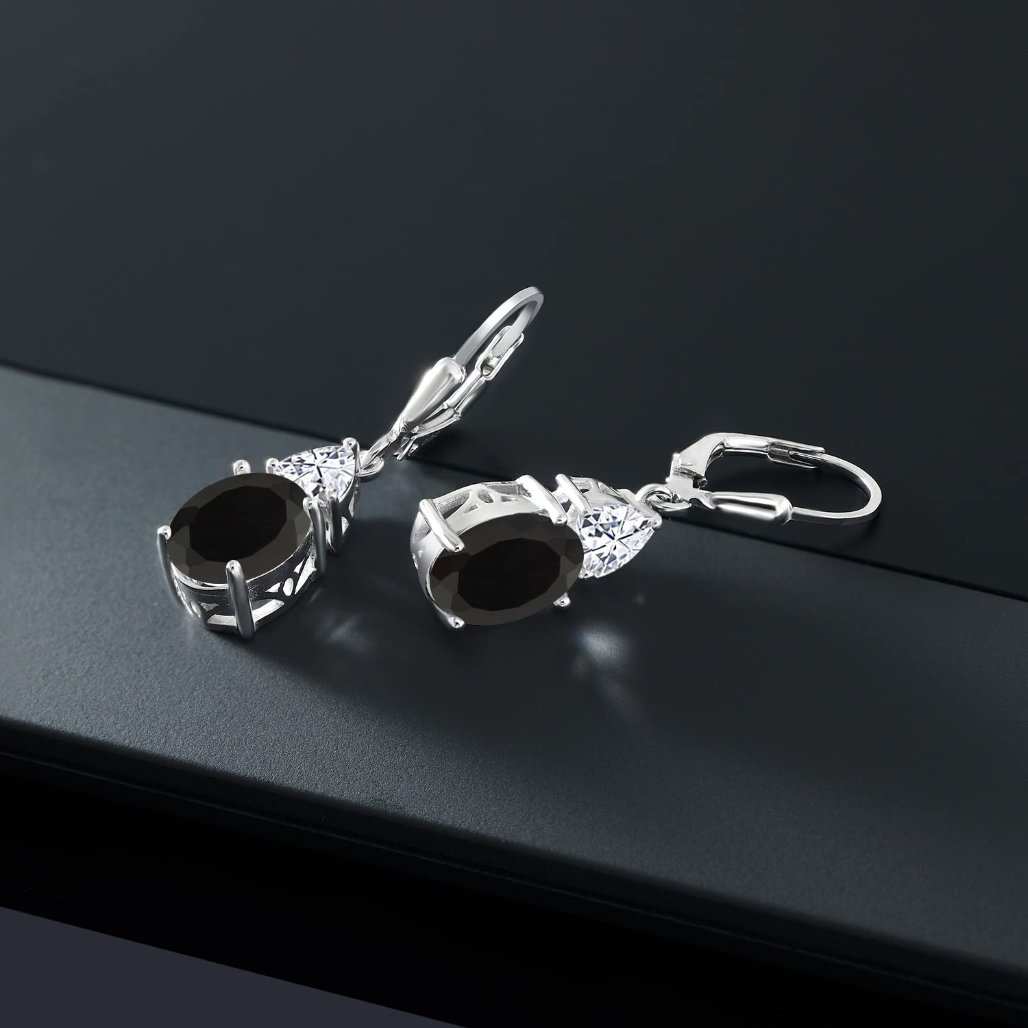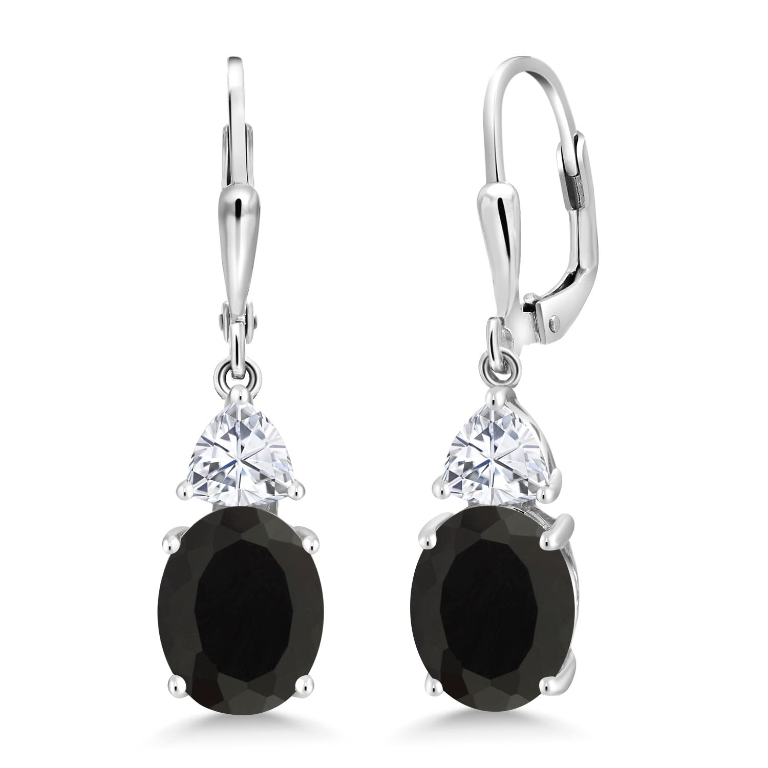 Gem Stone King 925 Sterling Silver Black Onyx and White Moissanite Dangle Earrings For Women (5.94 Cttw, Gemstone December Birthstone, Oval 10X8MM, Trillion 5MM)